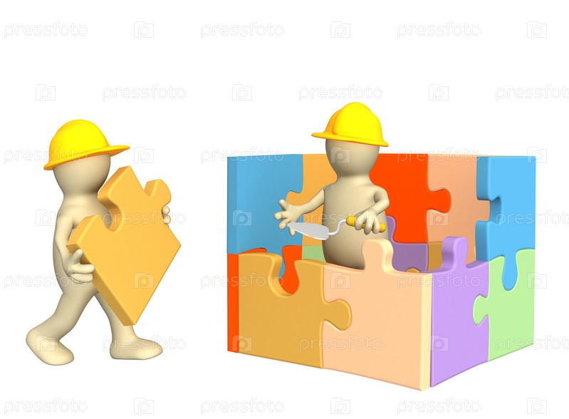 Людишки - строители, строящие домик из головоломок