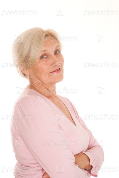 Красивая пожилая женщина на белом фоне