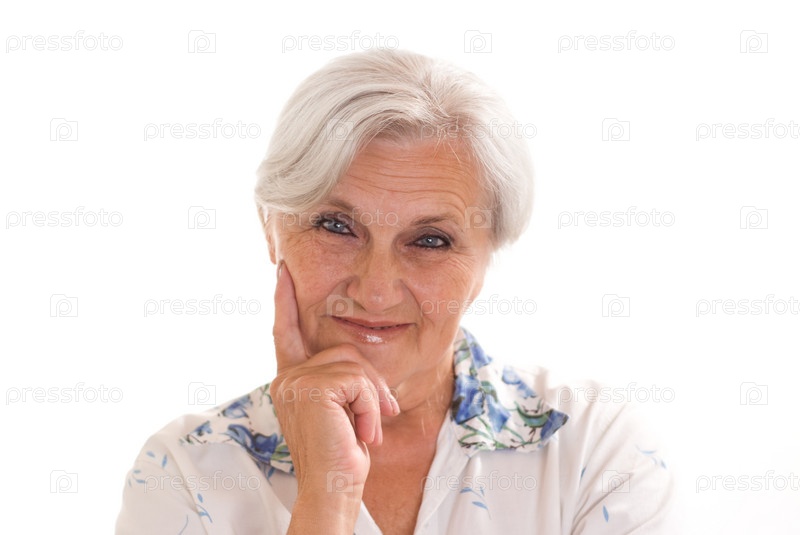 Красивая пожилая женщина на белом фоне