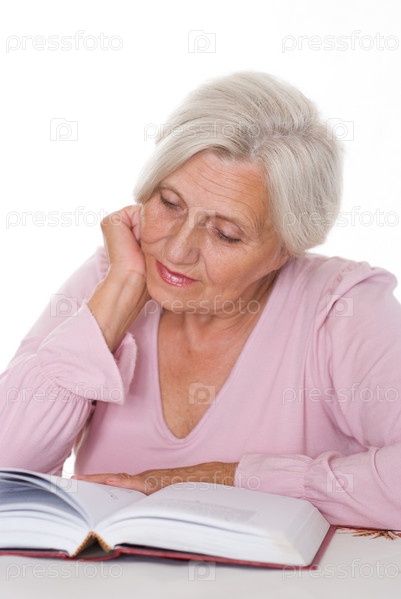 Пожилая женщина читает книгу