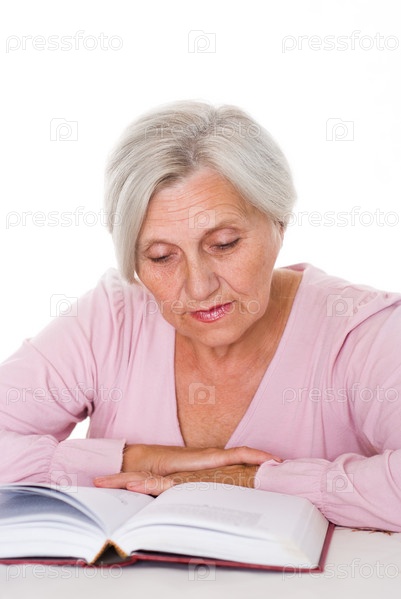 Пожилая женщина читает книгу