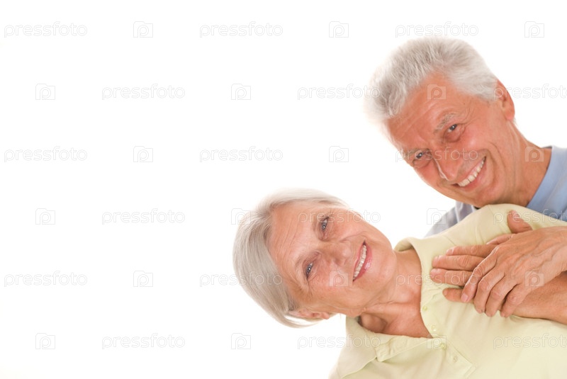 Счастливая пожилая пара на белом фоне