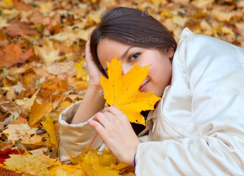 Женщина в осенней листве