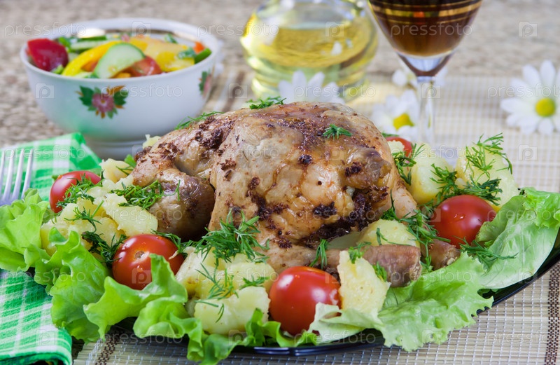 Запеченная курица с овощами