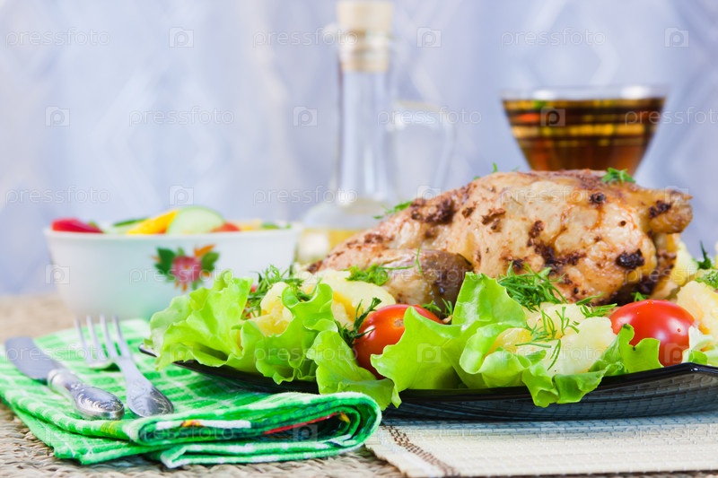 Запеченная курица с овощами