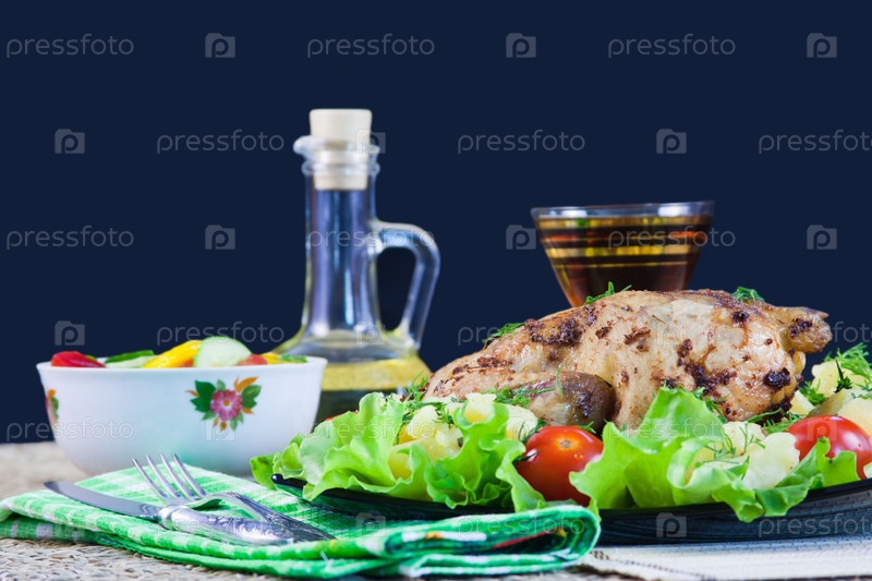 Запеченная курица с овощами