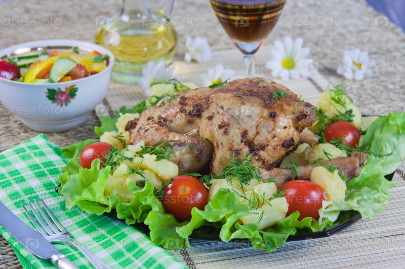 Запеченная курица с овощами