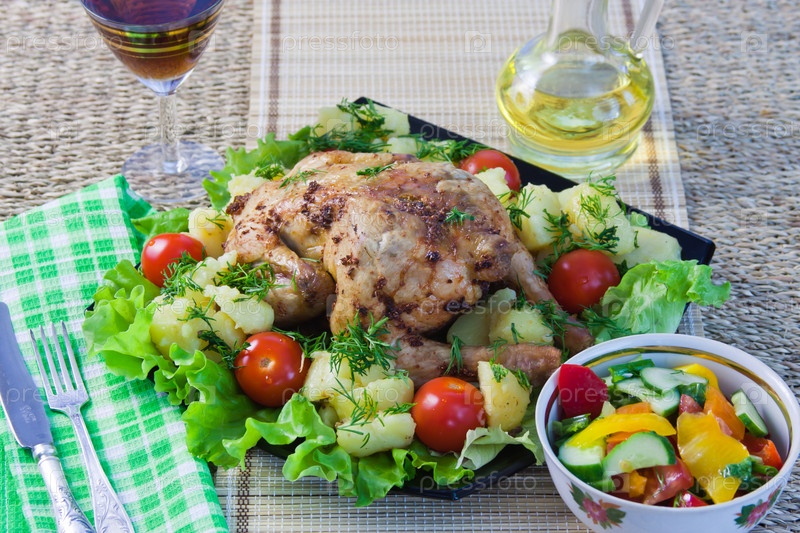 Запеченная курица с овощами