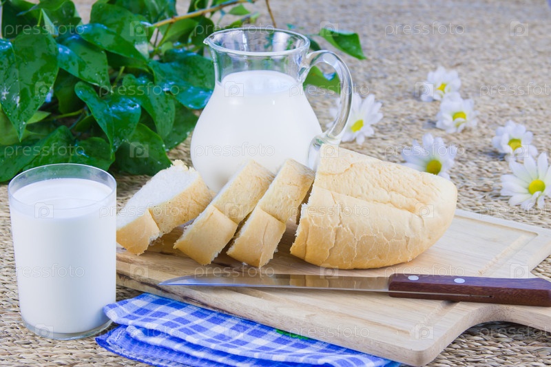 Свежий батон и молоко на столе
