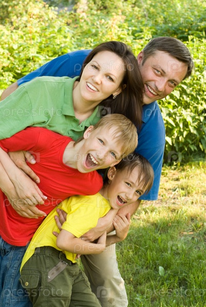 Портрет счастливой семьи из четырех человек