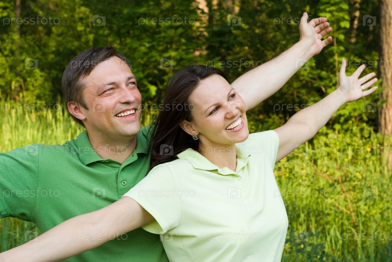 Счастливая влюбленная пара на природе