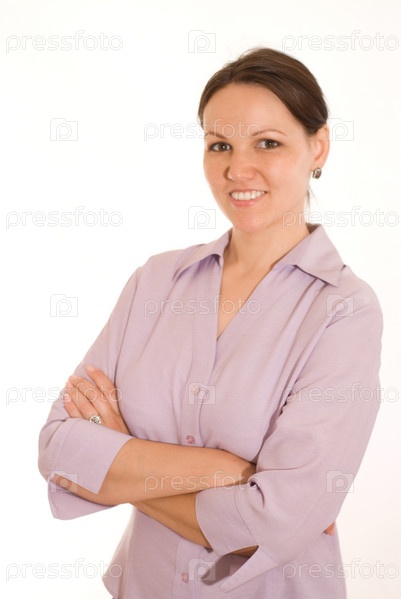 Красивая молодая женщина на белом фоне