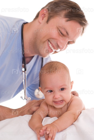 Доктор осматривает новорожденного