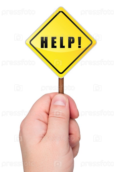 Треугольный щит желтого цвета с надписью 'Помощь в руке' на белом фоне