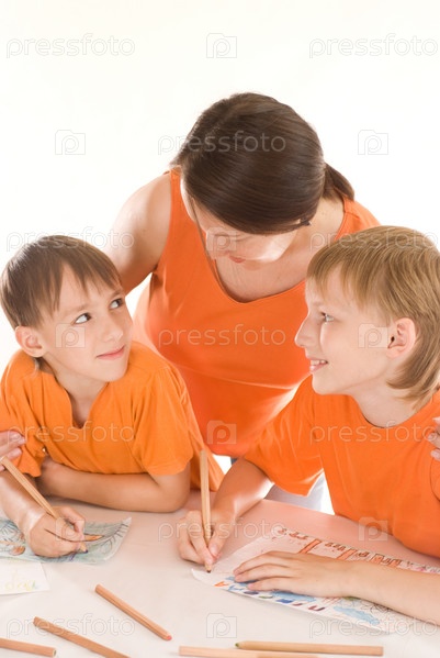 Счастливая женщина с сыновьями
