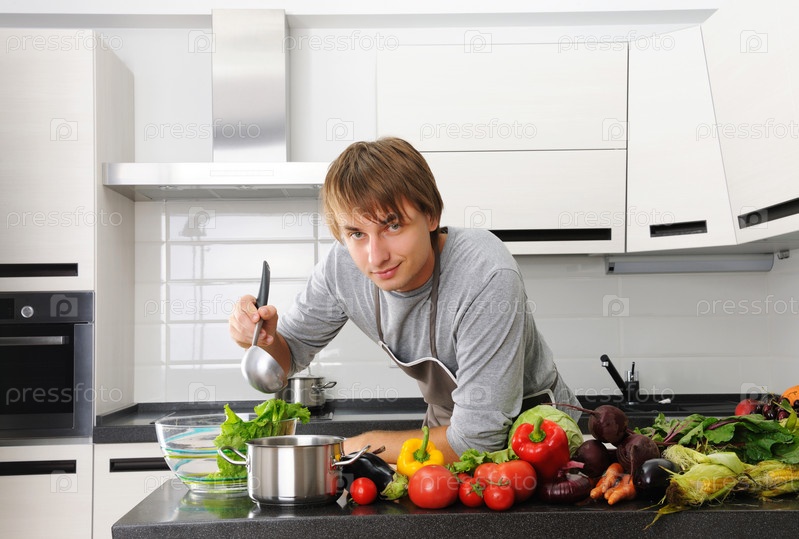 Мужчина готовит пищу на современной кухне