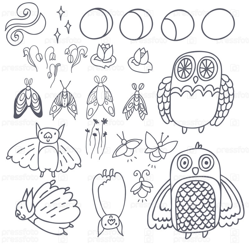 Ночные создания. Векторный сет, контуры