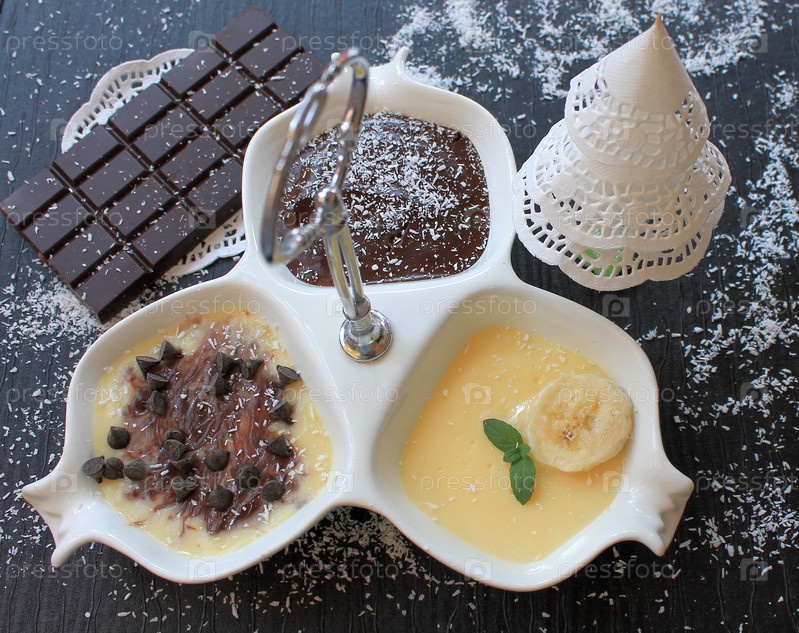 Банановый пудинг и шоколадный пудинг