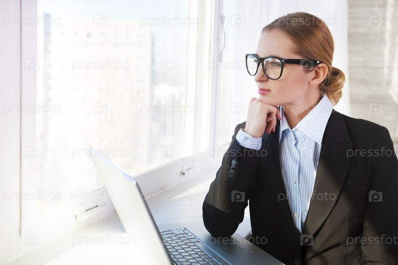 Бизнес-леди с ноутбуком в офисе
