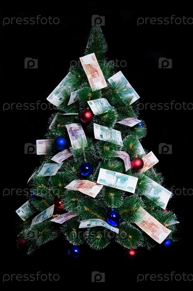 Новогодняя ель, украшенная банкнотами