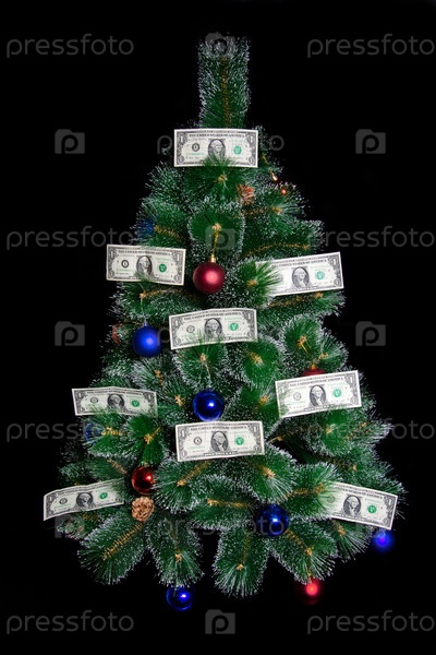 Новогодняя ель, украшенная банкнотами