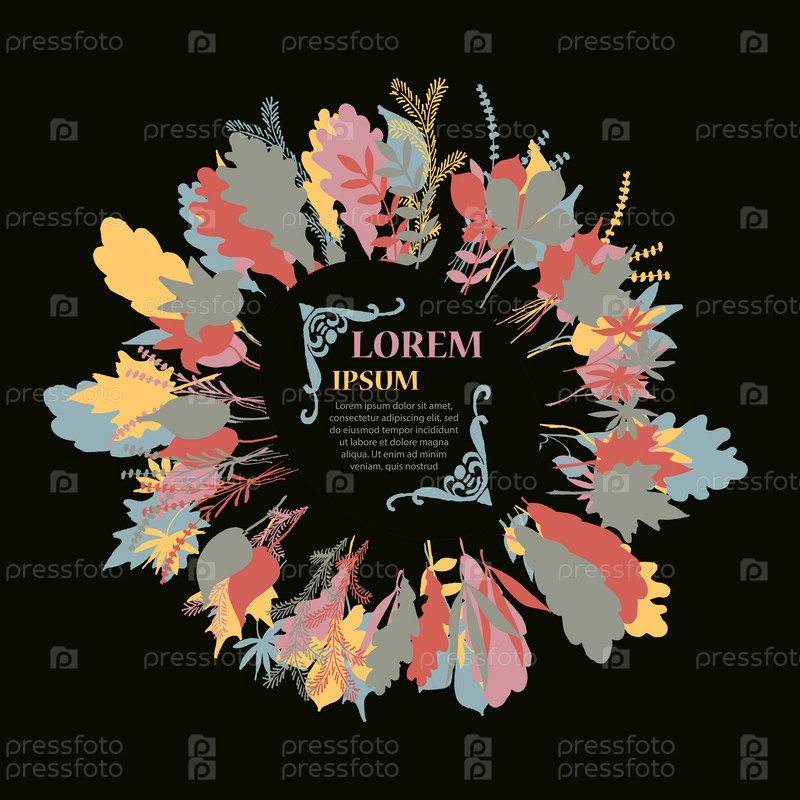 Осенняя круглая рамка. Венок листьев