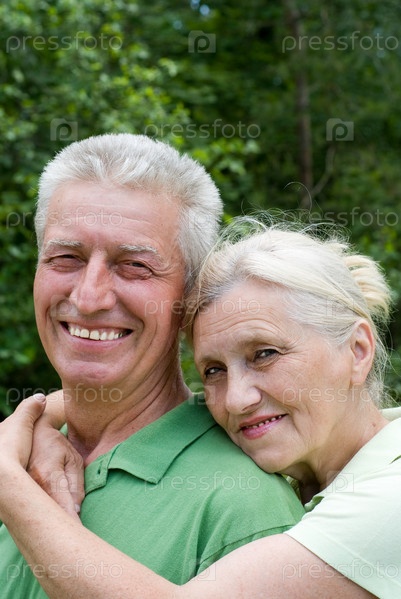 Счастливая пожилая пара в парке летом