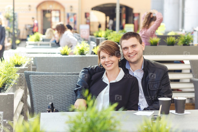 Молодая пара проводит время в кафе