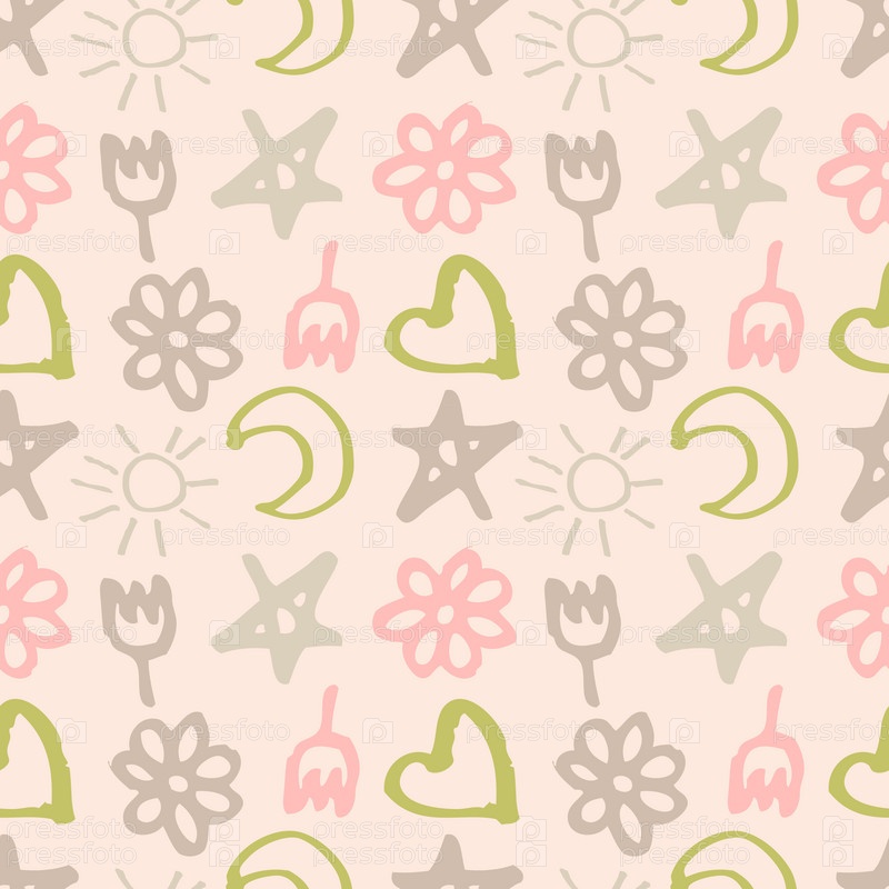 Бесшовный паттерн с звезды, сердца, солнце, Луна, цветы в стиле детей