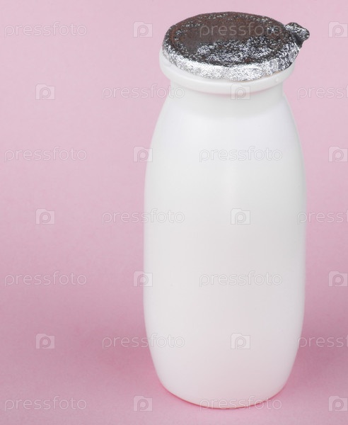 Белая бутылка на розовом фоне