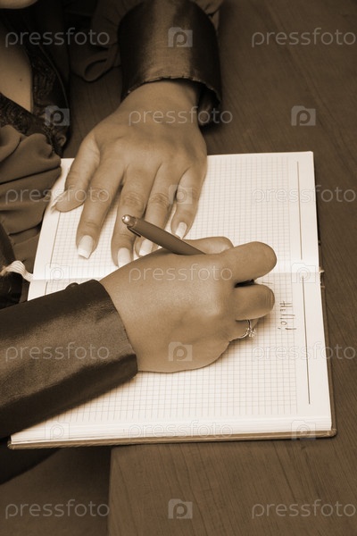 Женщина делает запись в дневнике