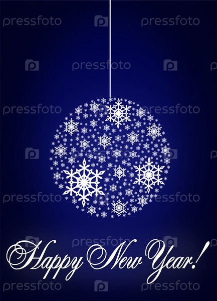 Новогодний фон с нарисованным шаром из снежинок