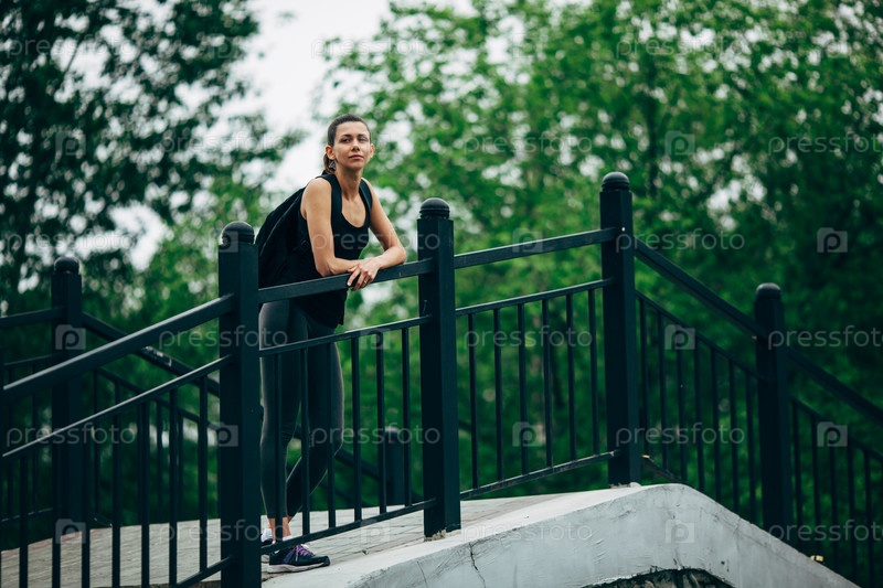Женщины в спортивной одежде на мосту