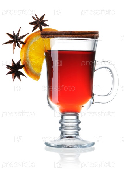 Горячий глинтвейн на белом фоне