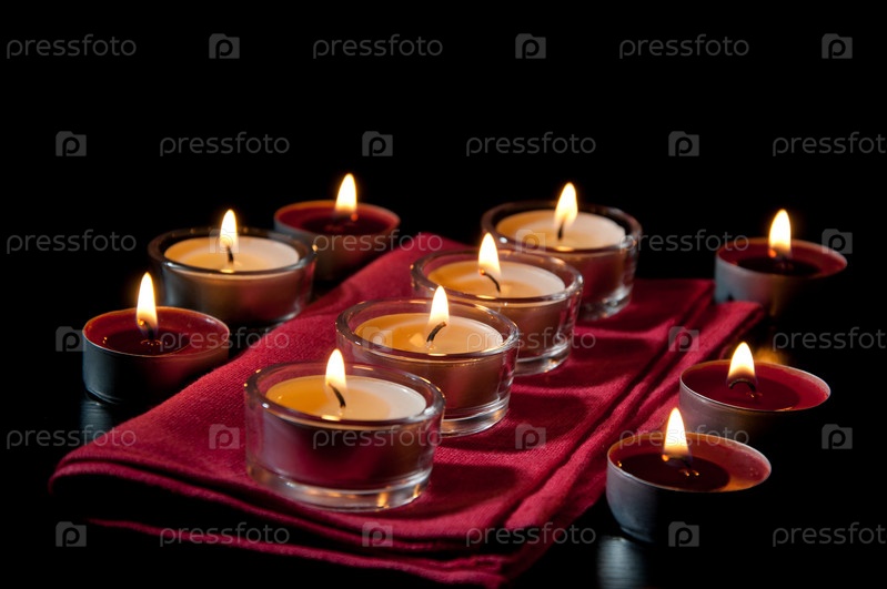 Зажженные чайные свечи в темноте