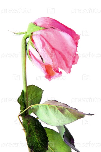 На белом фоне завядшая роза