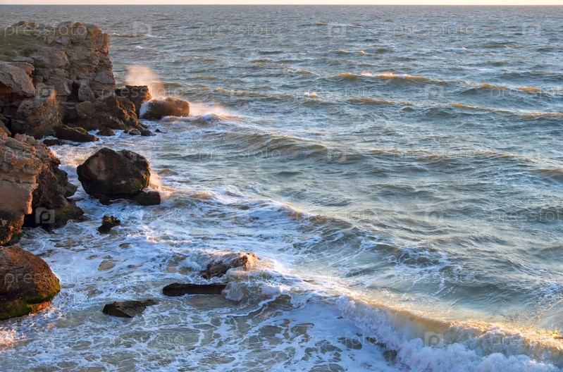 Скалистый берег и волны прибоя