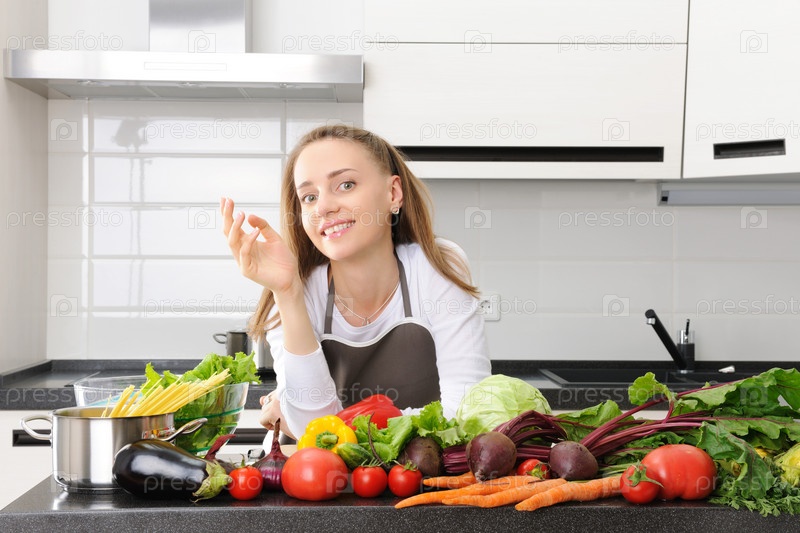 Девушка в современной кухне