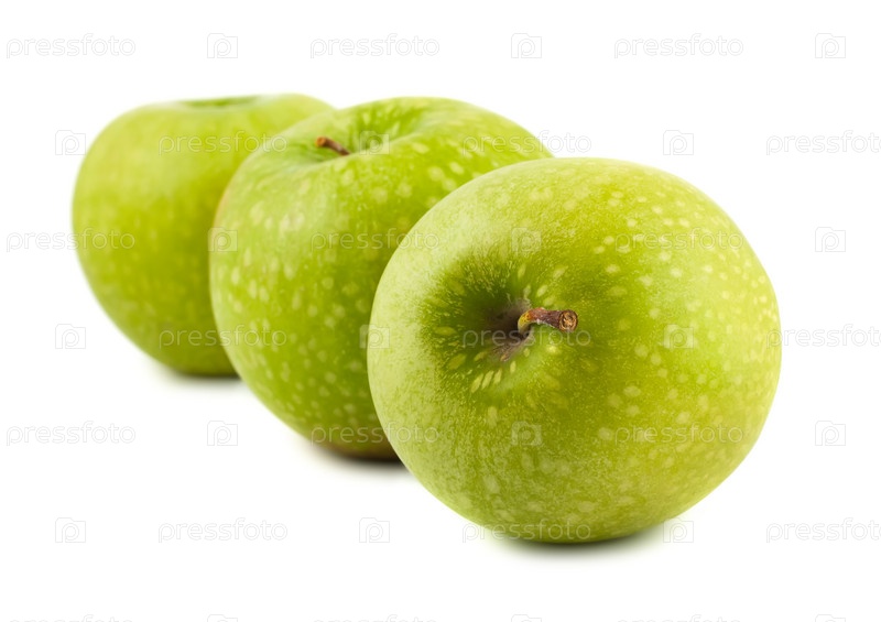 Три зеленых яблока на белом фоне