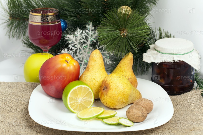 Новогодний натюрморт из орехов и фруктов