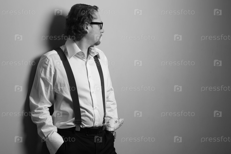 Монохромное изображение мужчины у стены