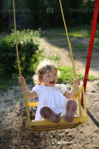 Маленькая девочка на качелях