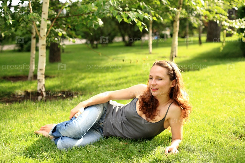 Женщина отдыхает в парке на траве