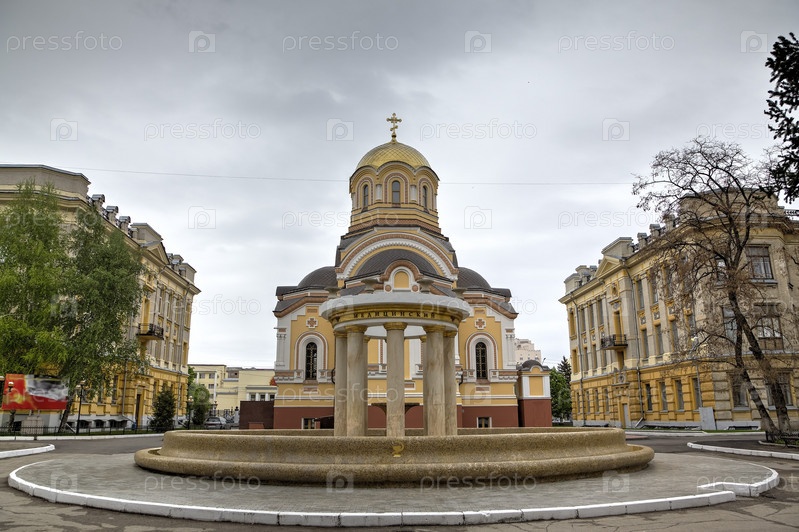 Фонтан за Храмом Святых равноапостольных Мефодия и Кирилла при Саратовском государственном университете. Саратов, Россия