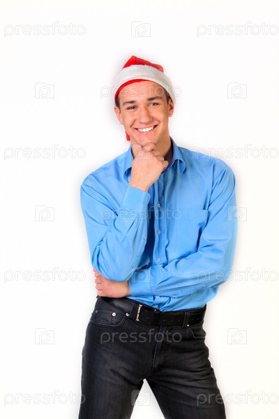 Улыбающийся парень в новогодней шапке