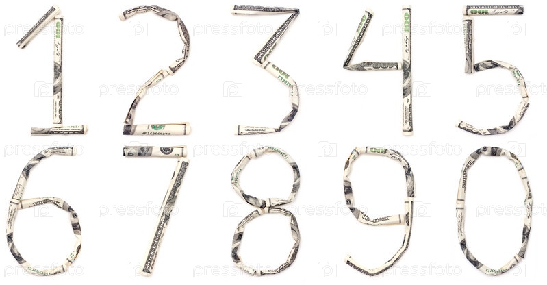 Цифры, скрученные из долларовых купюр