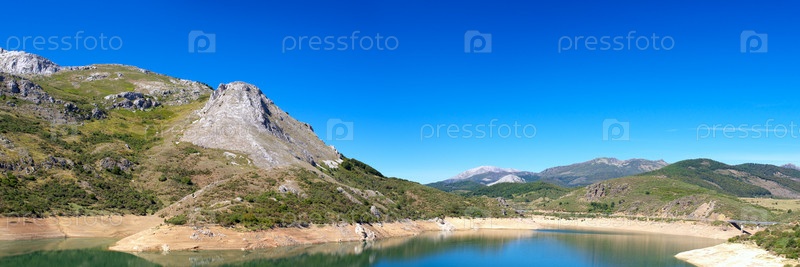 Панорамный вид на озеро и горы. Кастилья де Леон, Испания