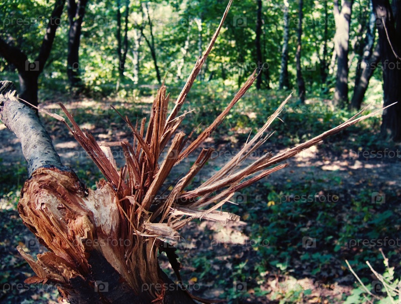 Упавшее дерево в зеленом парке