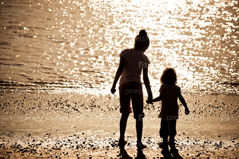 Силуэт двоих детей на берегу моря