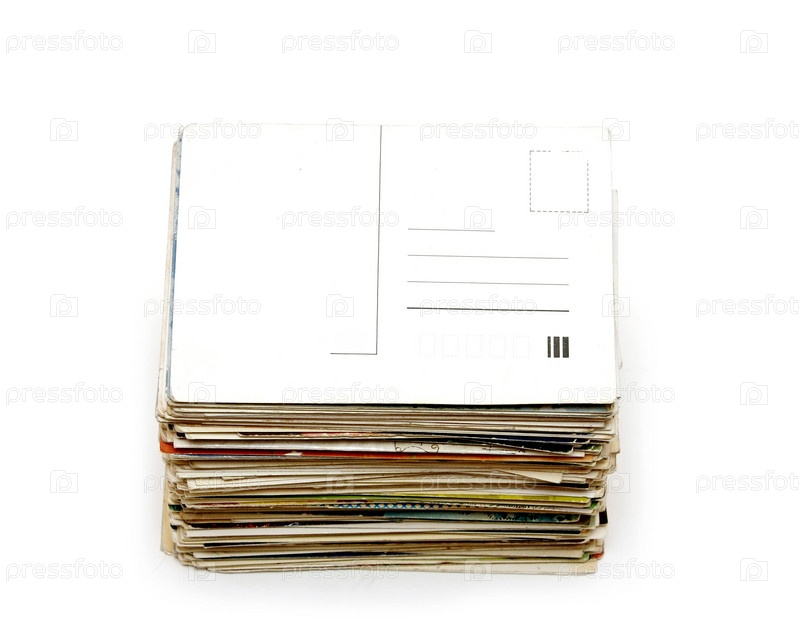 Большая куча старых писем и открыток с местом для текста, на белом фоне